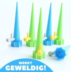 Het wordt je enorm gemakkelijk gemaakt, je vult de fles met water en draait deze op het product. Vervolgens stop je het systeem in de grond en draai je de druppelaar op het gewenste aantal druppels. Past op alle normale grote petflessen!