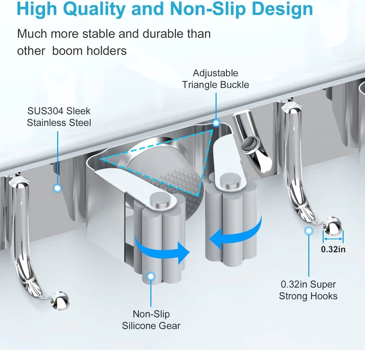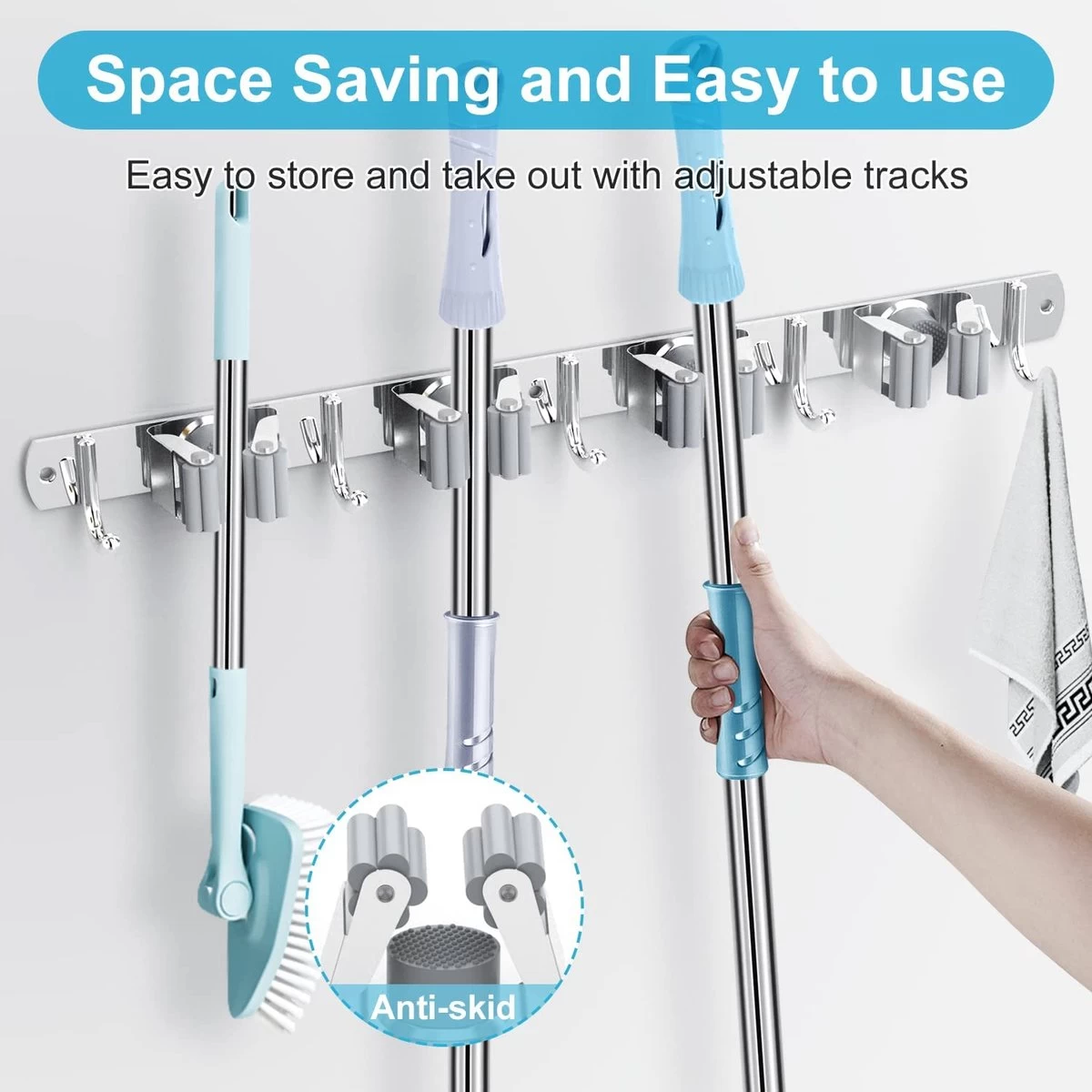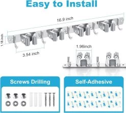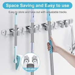 BOTC Bezemhouder – 5 Houders 6 Haken Bezem Ophangsysteem – Zeflklevend – Opbergsysteem – Ophanghaken – Tuingereedschap – Gereedschap Opbergen