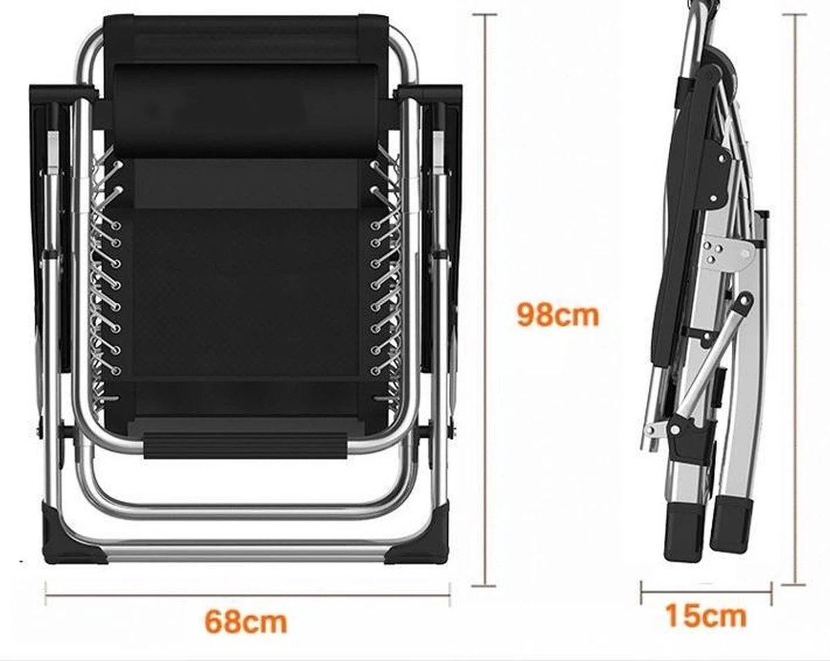 Stevige rechthoekige buizen (40mm)_metalen frame_max belasting 180 kg_gewicht 7,2 kg _ incl tafel en kussen.