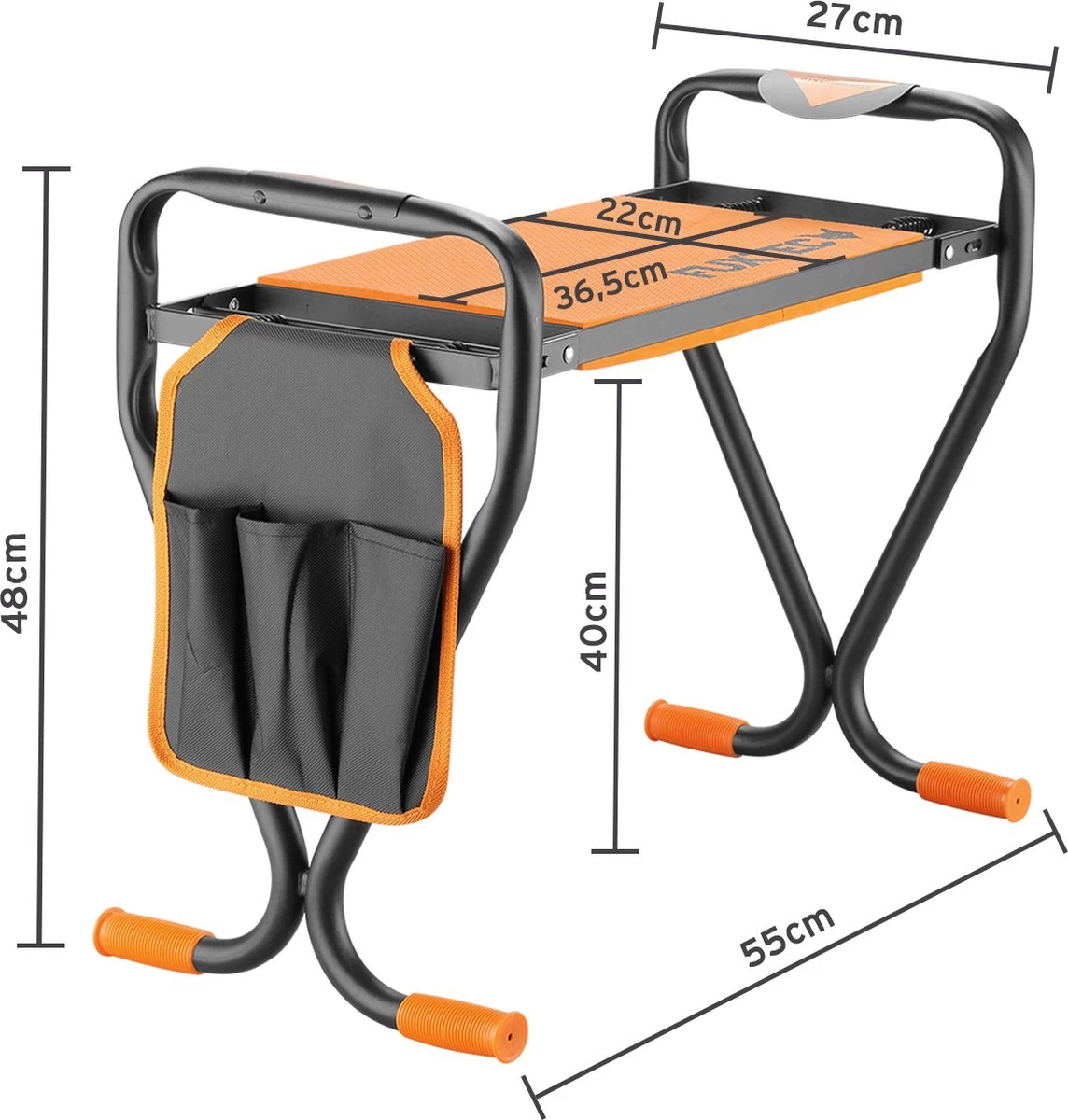 De FUXTEC kniebank is een praktisch hulpmiddel bij uw tuinwerkzaamheden als u knielt. De bekleding voorkomt hevige pijn tijdens het werken, beschermt uw kleding tegen vuil en zorgt ervoor dat u comfortabel uw planten kunt verzorgen. De extra gereedschapstas ondersteunt u ideaal bij het tijdelijk opbergen van de noodhulpen, zodat u uw ondersteuning altijd bij de hand hebt en u zich volledig aan het tuinieren kunt wijden.