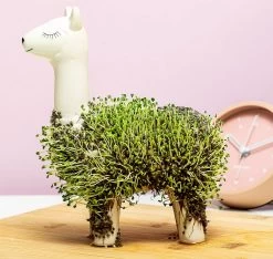 Lama bloempot met zaadjes van Gift Republic. Bloempot die geen potgrond of aarde nodig heeft, maar planten laat groeien met water en zaden. De plantenpot is gemaakt van keramiek en werkt op basis van de hydrophonics groeitechniek. Deze bloempot wordt geleverd met een zakje chia zaden. Zorgen voor meer groen in huis en is steeds opnieuw te gebruiken. Afmeting: 21 x 17 x 9 centimeter.