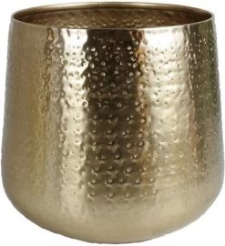 Deze metalen sierpot Karakter van het merk Gina Da is een echte trend op interieurgebied! De kleur van de pot is mat goudkleurig koper en heeft een geponste structuur aan de buitenzijde. De pot kan vanwege het vintage karakter hier en daar wat krasjes, plekjes en oneffenheden bevatten. Maak een combinatie van verschillende formaten om het totaal plaatje af te maken!