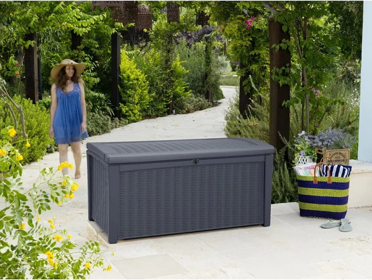 Door het volume van 416 Liter kunt u met gemak uw tuinkussens, speelgoed of andere tuinspullen opbergen in deze box. De box beschikt over een goede ventilatie en is spatwaterdicht.