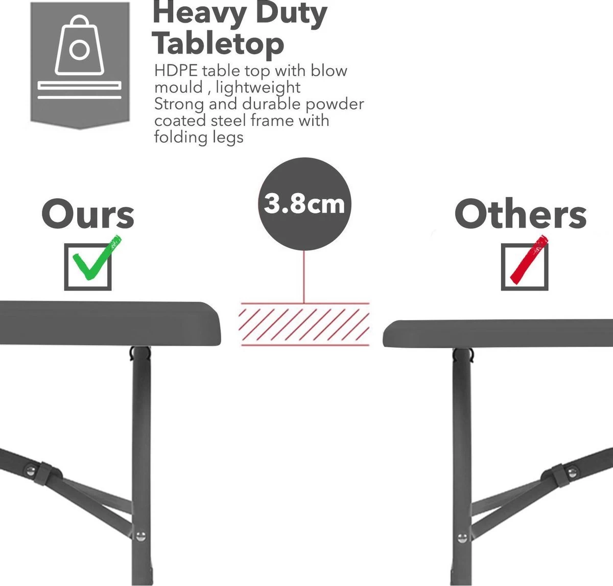 De MaxxGarden Vouwtafel is gemaakt van high-density polyethyleen (HDPE) en gepoedercoat staal. De vouwtafel heeft een rotanlook en is lichter en steviger dan traditionele vouwtafels. De tafel is zeer eenvoudig op te vouwen en op te zetten. Het tafelblad in polytheen is bestand tegen schokken, barsten, afschilferen en vlekken. Hij is UV-beschermd, zal niet barsten of afbladderen en is gebouwd voor gebruik binnen en buiten. Het gepatenteerde stalen frame ontwerp biedt een stevige basis en heeft een weerbestendige afwerking. Ideaal voor familiedagen, bbq’s, verjaardagen en nog veel meer.