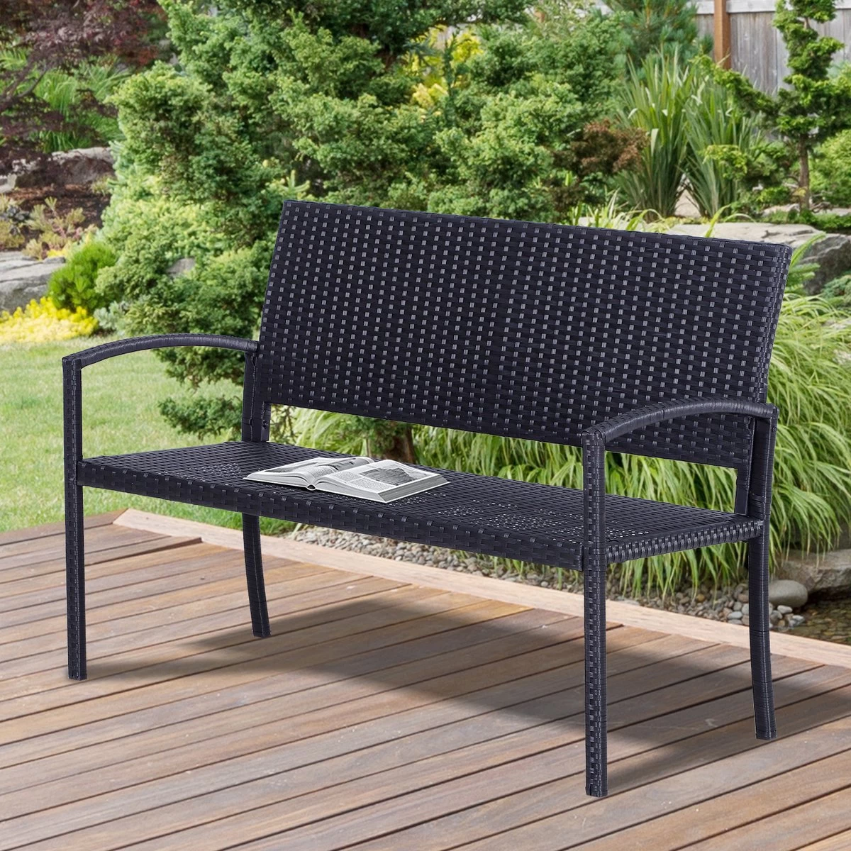 Outsunny Polyrotan Tuinbank 2-zits Parkbank Bank Staal Zwart 867-022