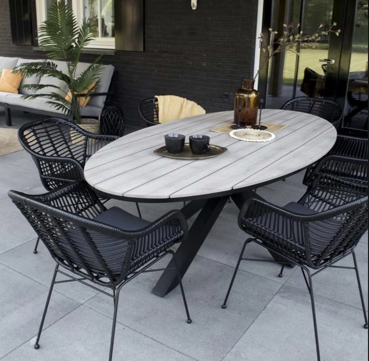 Ovale Tuintafel Cyprus 180cm (Wood) – Polywood blad & aluminium poten