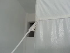 Het zeil van de partytent is 100% waterdicht. Het dakzeil wordt met klittenband aan de buizen vastgemaakt.