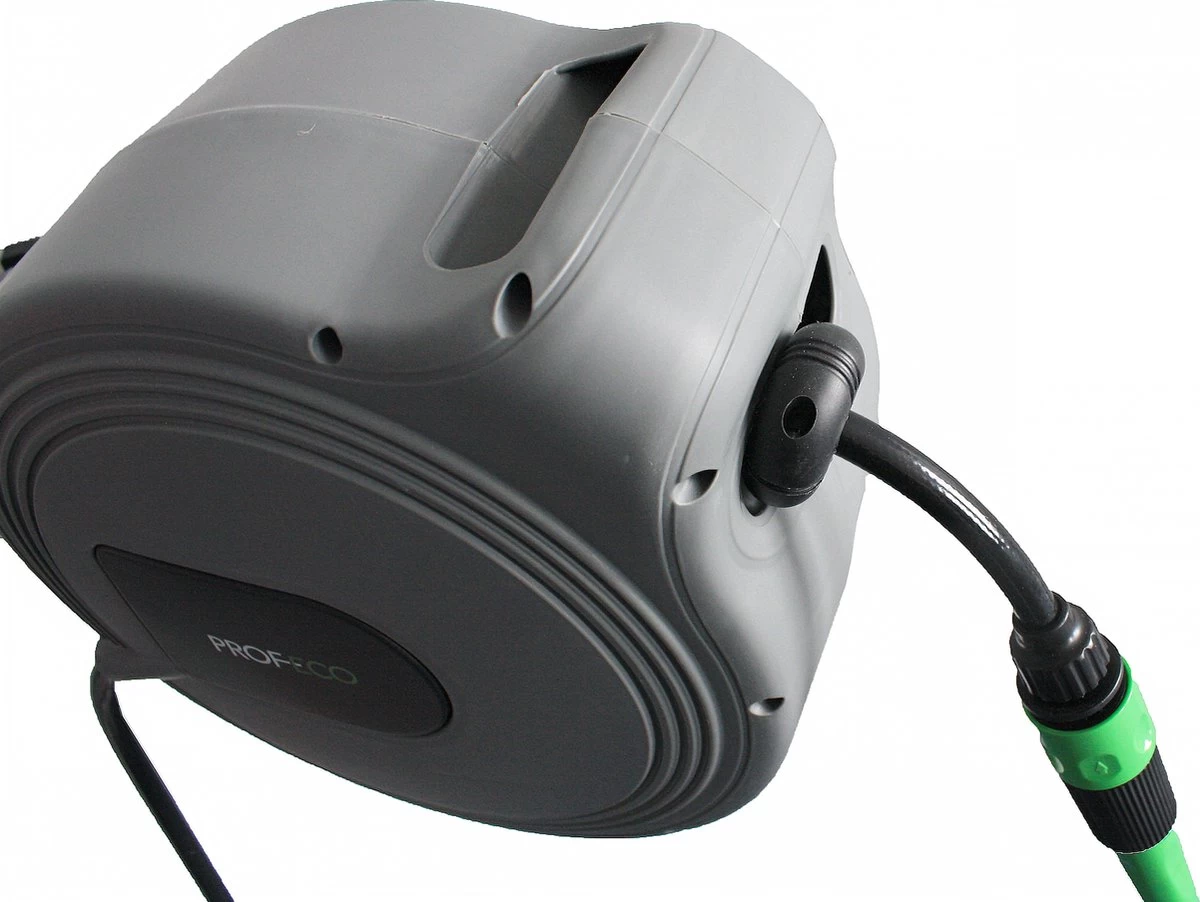 Deze Profeco wandslangenbox, ook wel muurhaspel of tuinslanghaspel genoemd, maakt het water geven aan bloemen en planten net even gemakkelijker. Uw tuin bewateren? Met deze semi-automatische Profeco tuinslangbox gaat dat uiterst eenvoudig. De wandbox is voorzien van een geintegreerde haspel, waarvan u de tuinslang eenvoudig uitrolt en na gebruik weer automatisch in de box laat rollen. De wandbox monteert u eenvoudig aan een muur, schutting of paal in uw tuin. Zeer geschikt om planten, bloemen en struiken efficiënt en gemakkelijk te bewateren. Het bereik van de tuinslang is bovendien ruim door een lengte van 15 meter en de 180 graden draaimogelijkheid van de wandbox. De tuinslang rolt zichzelf na gebruik automatisch op. U kunt de wandbox van de beugel afhalen en zo eenvoudig vorstvrij en veilig bewaren. De meegeleverde Profeco tuinspuit is bovendien traploos verstelbaar van een lichte mist tot een krachtige straal.