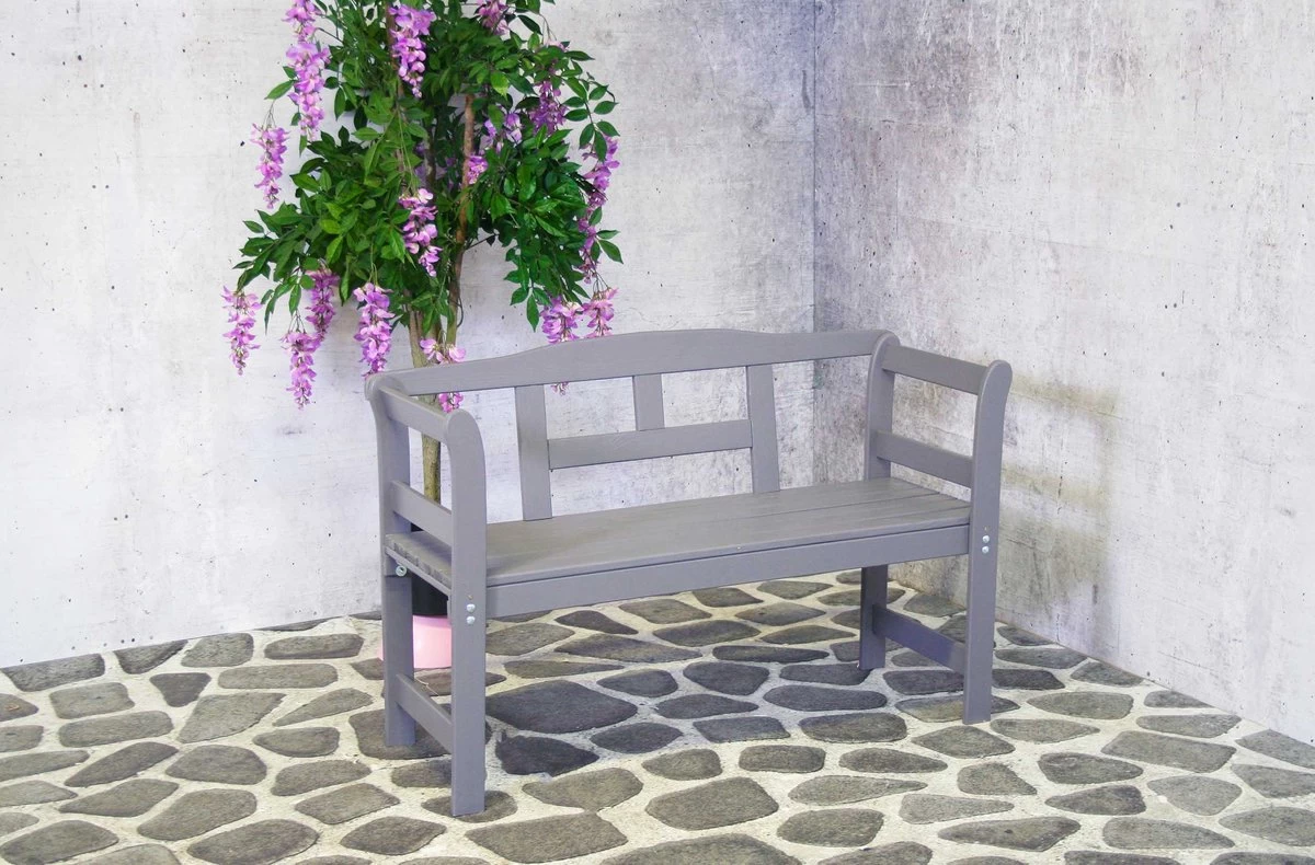 Trendy 2-zits tuinbankje Friesenbank gemaakt van 100% FSC vurenhout in de kleur lichtgrijs. Het FSC keurmerk staat voor houtkap uit duurzame en door milieuorganisaties gecontroleerde bossen.�De tuinbank�past in vrijwel iedere tuin door de strakke vormgeving en natuurlijke uitstraling. De tuinbank Friesenbank heeft de volgende afmetingen: 113x40x75cm (BxDxH). De tuinbank�is een sieraad voor uw tuin of terras! De rugleuning en de armleuningen zijn al voorgemonteerd, waardoor hij snel en eenvoudig in elkaar te zetten is.�U krijgt op de tuinbank Friesenbank 2 jaar garantie.