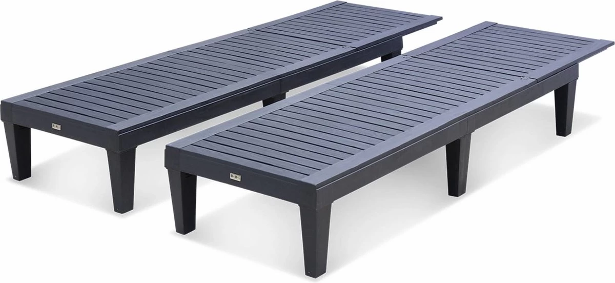 Set Van 2 Ligstoelen, PIA, Ligstoel Met Verschillende Standen, Van Kunststof, Zwart