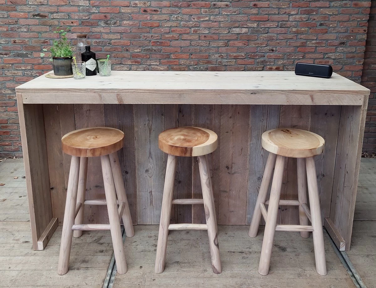 Houten barkrukken ook apart verkrijgbaar voor €129 per stuk op Philline.be