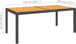 VidaXL Tuintafel 150x90x75 Cm Poly Rattan En Acaciahout Zwart