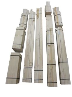 Bouwpakket is van onbehandeld gedroogd steigerhout, moet nog geschuurd worden, het gemakkelijkst gaat dit na montage
