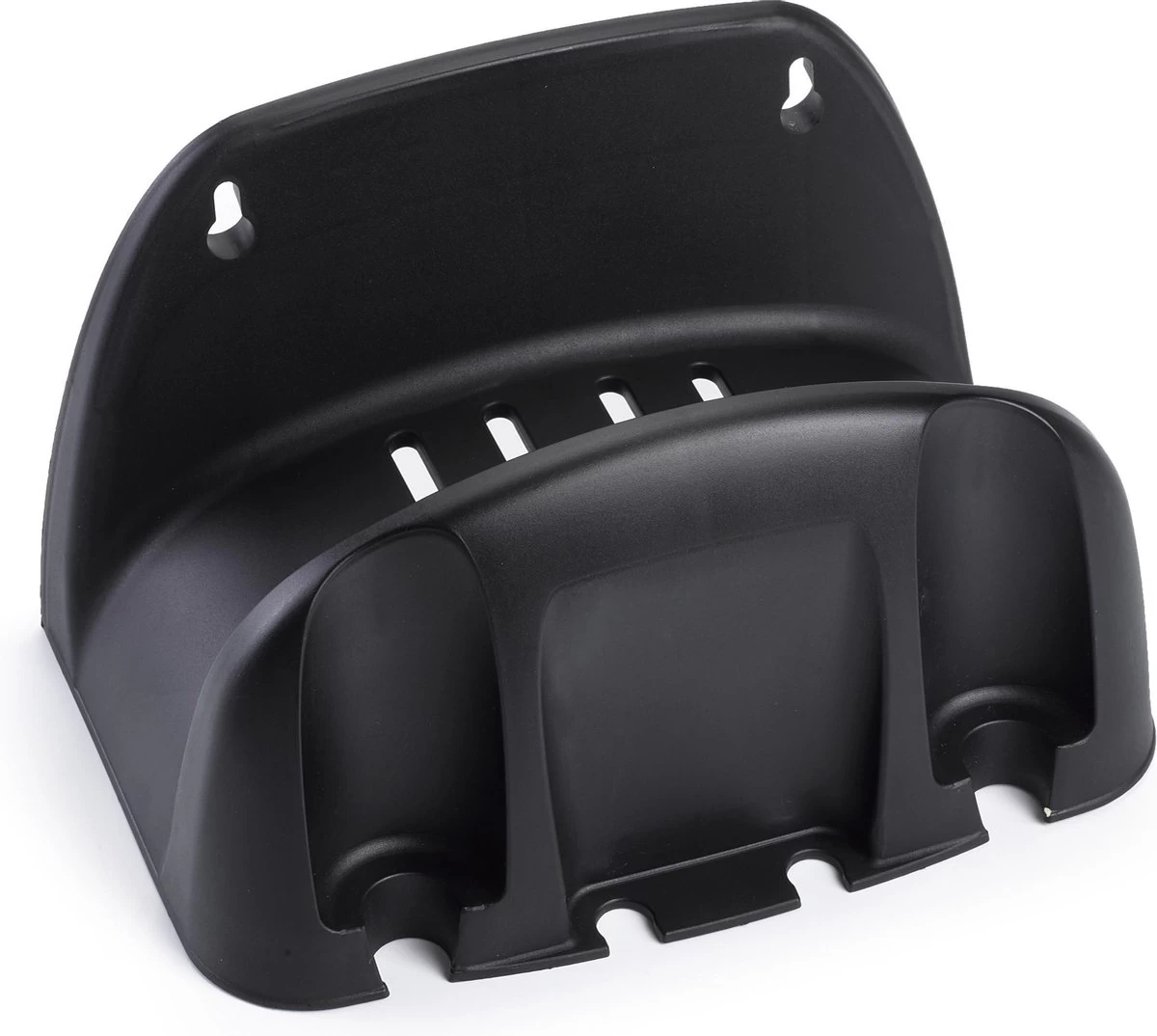 Tuinslanghouder kunststof in het zwart 16 x 25 x 15 cm. Een zwarte tuinslaghouder gemaakt van kunststof. Handig voor het opruimen/oprollen van uw tuinslang. Met ophangogen voor schroeven. Geschikt voor een universele tuinslang van circa 25 meter. Tuinslang ophangen / houder voor waterslangen.